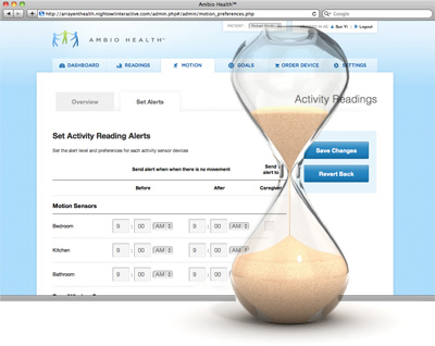 Alarm conditions can be pre-determined to alert you if there is no activity when you expect it, or if there is motion when you don’t expect it. Just as with the health meters, activity thresholds can be customized and alarms triggered as specified.